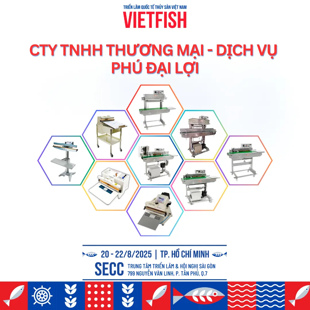 TP. HỒ CHÍ MINH, ngày 22 tháng 8 năm 2025 — Triển lãm Quốc tế Thủy sản Việt Nam (Vietfish 2025) vừa kết thúc thành công tại Trung tâm Hội chợ và Triển lãm Sài Gòn (SECC) sau ba ngày diễn ra sôi nổi (20-22/08/2025). Sự kiện năm nay tập trung vào chủ đề "Đổi mới và Bền vững", thu hút sự tham gia của hàng trăm doanh nghiệp, mang đến những giải pháp và công nghệ mới nhất cho ngành thủy sản. Trong bối cảnh đó, Công ty TNHH TM DV Phú Đại Lợi đã khẳng định vị thế của mình bằng việc giới thiệu các giải pháp máy đóng gói đột phá, góp phần nâng cao năng lực cạnh tranh cho doanh nghiệp Việt Nam trên thị trường quốc tế.