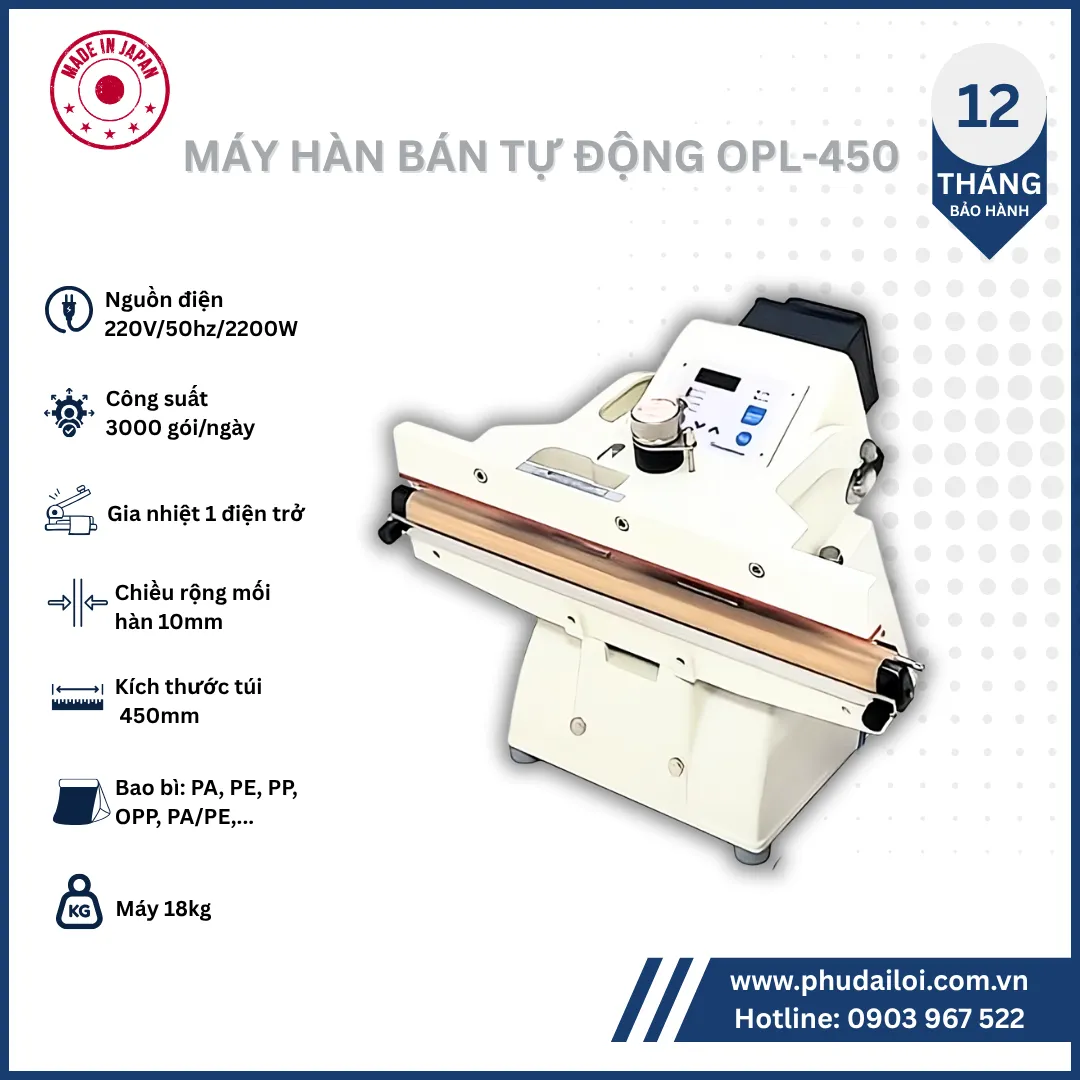 Máy đóng gói điện tử OPL-450 là giải pháp hàn bao bì hàng đầu cho các doanh nghiệp cần sự chính xác, ổn định và linh hoạt trong quy trình đóng gói. Với chức năng kiểm soát nhiệt độ bằng cảm biến tiên tiến, khả năng hàn miệng túi đa dạng và chất lượng đáng tin cậy, OPL-450 sẽ là công cụ đắc lực giúp bạn nâng cao chất lượng sản phẩm, tối ưu hóa quy trình sản xuất và củng cố vị thế trên thị trường.