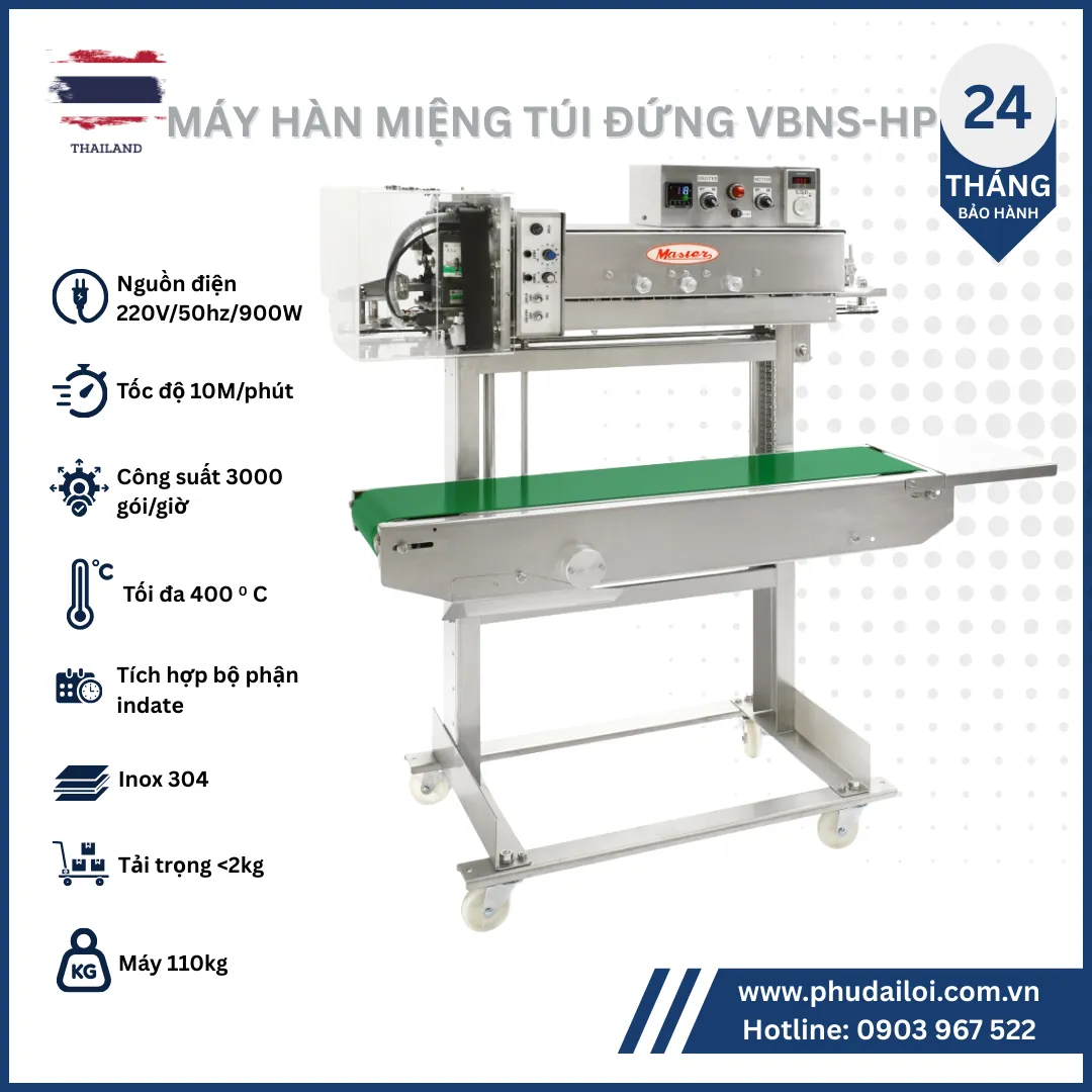 Trong các dây chuyền sản xuất công nghiệp, việc tích hợp đồng thời quá trình hàn kín bao bì và in thông tin sản phẩm (date) một cách tự động và liên tục là yếu tố then chốt để tối ưu hóa hiệu suất và đảm bảo tính chuyên nghiệp. Máy hàn bao bì băng tải liên tục HBNS-HP chính là giải pháp hoàn hảo cho nhu cầu này. Với thiết kế bền bỉ từ inox #304, tốc độ băng tải tùy chỉnh và đặc biệt là hệ thống in nhiệt tự động tích hợp, HBNS-HP mang đến quy trình đóng gói và in ấn liền mạch, hiệu quả.
