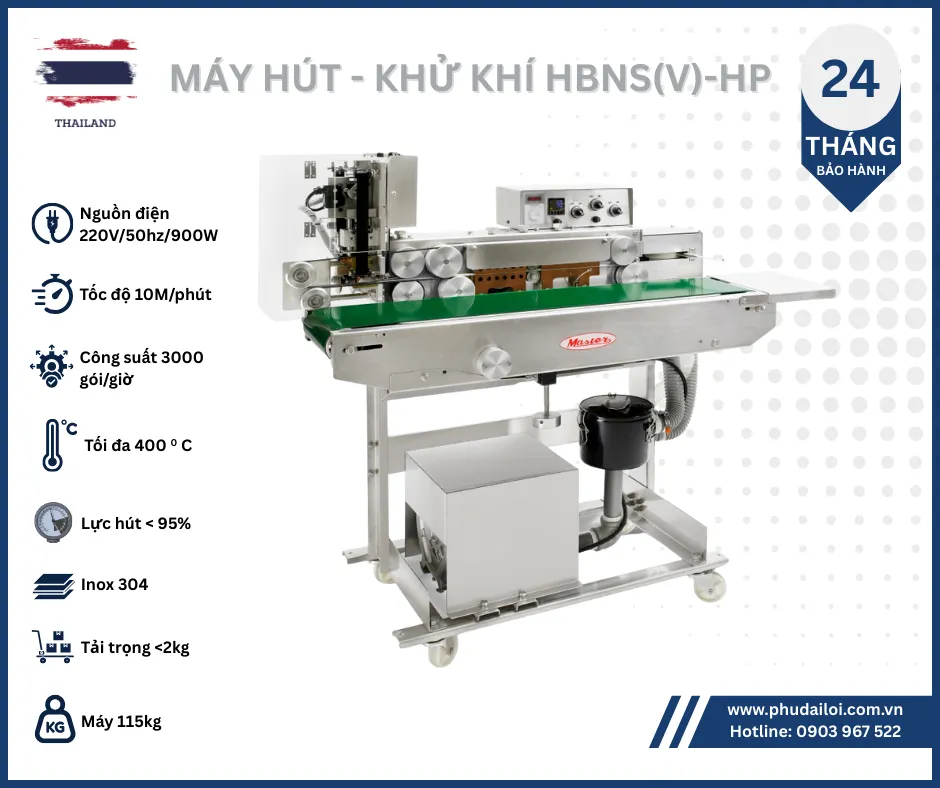 Với khả năng hút chân không sâu, khử khí mạnh mẽ, hàn kín miệng túi chắc chắn, in date tự động và năng suất đóng gói lên đến 3000 gói/giờ, HBNS(V)-HP không chỉ giúp bảo quản sản phẩm tươi ngon mà còn tối ưu hóa quy trình sản xuất, tiết kiệm thời gian và chi phí cho doanh nghiệp.
